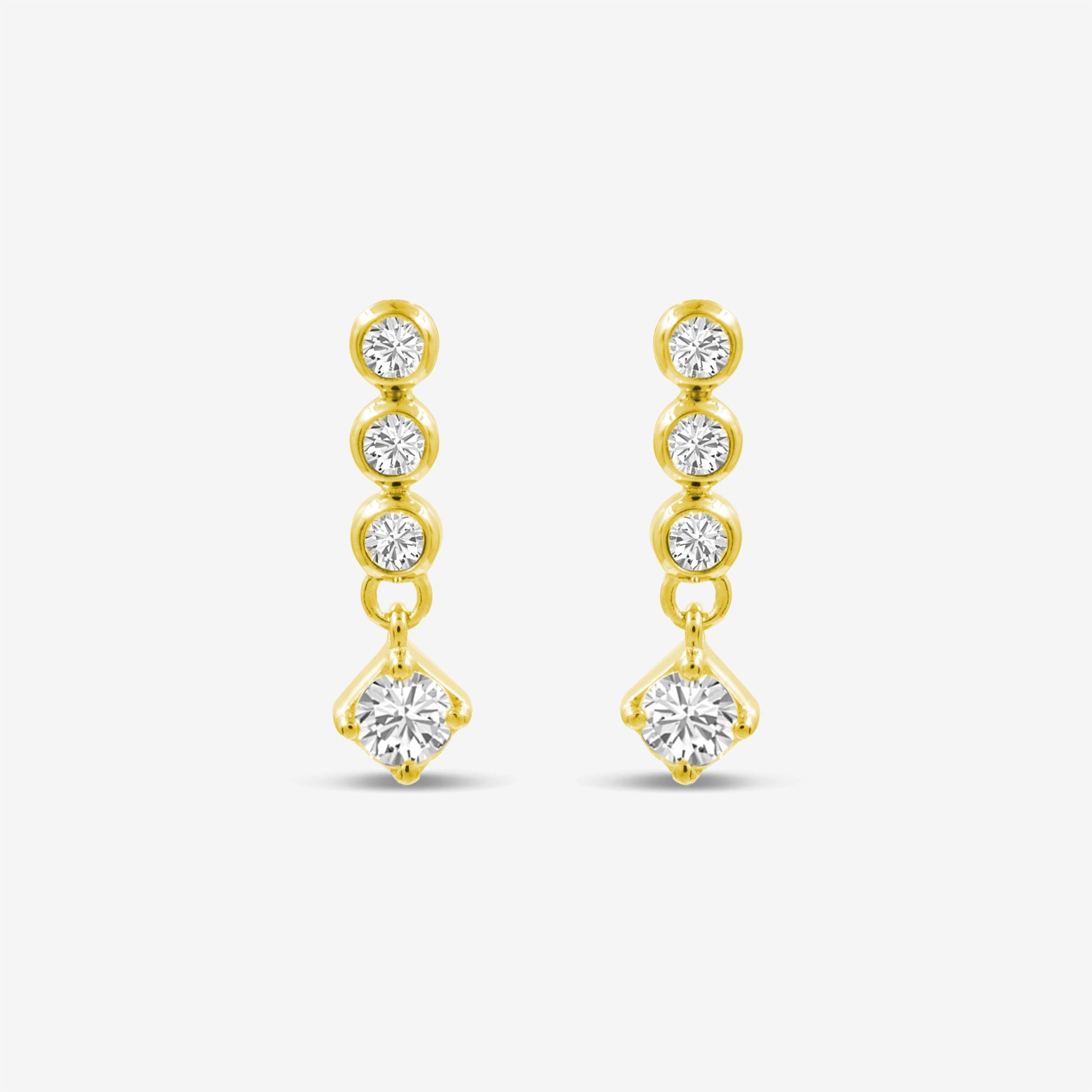 Øreringe i genbrugt sterling sølv og 14 karat forgyldning med klare kubiske zirkoner.